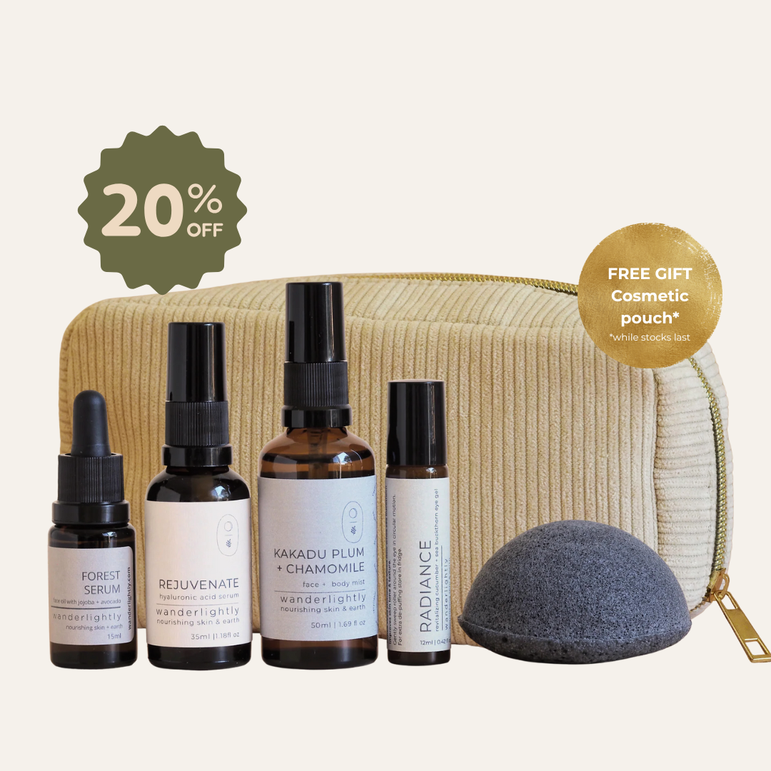 Kakadu Plum + Chamomile Mist – Vitamin C–rich native botanicals that calm, brighten and balance skin tone.